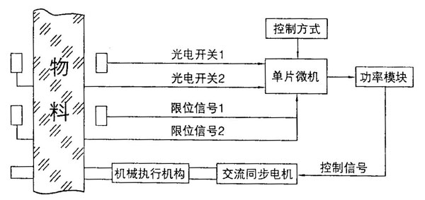 GDJP-3型光電糾偏系統(tǒng)中,由光電檢測開關(guān)檢測邊或線的位置,以拾取邊或線位置偏差信號。再將位置偏 差信號進行邏輯運算,產(chǎn)生控制信號,用交流同步電機驅(qū)動機構(gòu)執(zhí)行機械(絲杠、拖板等),修正物料運行時的蛇型偏差,控制物料直線運動。在偏差方向上設(shè)置左、右限位開關(guān),防止系統(tǒng)失控。