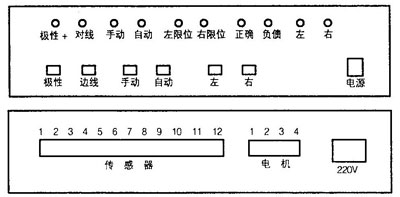 “正偏”、“負偏”指示燈用于指示物料的偏移狀態(tài),二燈同時熄滅時為平衡狀態(tài)。