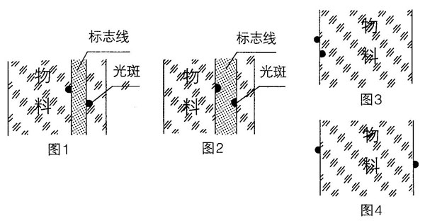 ②當(dāng)系統(tǒng)用雙光電開關(guān)作“對邊”工作時,使光斑處于分界線的兩邊緣,如圖3。