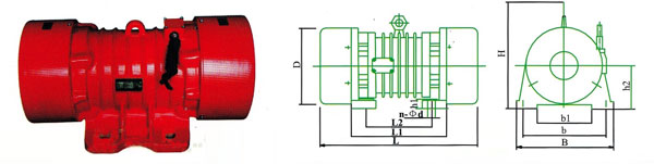 | 型號 | 激振力 X103N | 額定功率KW | 額定電流A | 振動次數次/分 | L | B | H | L1 | L2 | b | b1 | hi | h2 | D | n-Od |