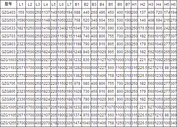 | GZG1255 | 1250x2000x315 | 270 | 100 | ZG625 | 2x3.84 | 2x1.5 | 1077 |