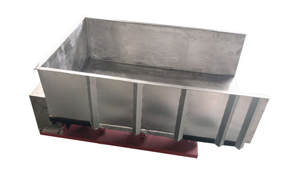 GZV系列振動給料機由給料槽、彈性系統、銜鐵、鐵芯、線圈、機座、減振彈簧等部分組成。槽體以及與槽體聯接的銜鐵構成質量mt,機座及與之聯接的鐵芯、線圈構成了質量m2。ml和用板彈簧聯接起來,使系統構成一個雙質點近共振系統。電磁線圈由單相交流電經可控硅半波整流后供電,系統在電磁力作用下作受迫振動。 給料機的料槽在振動過程中不斷將物料向前方拋起,從而達到給料的目的。